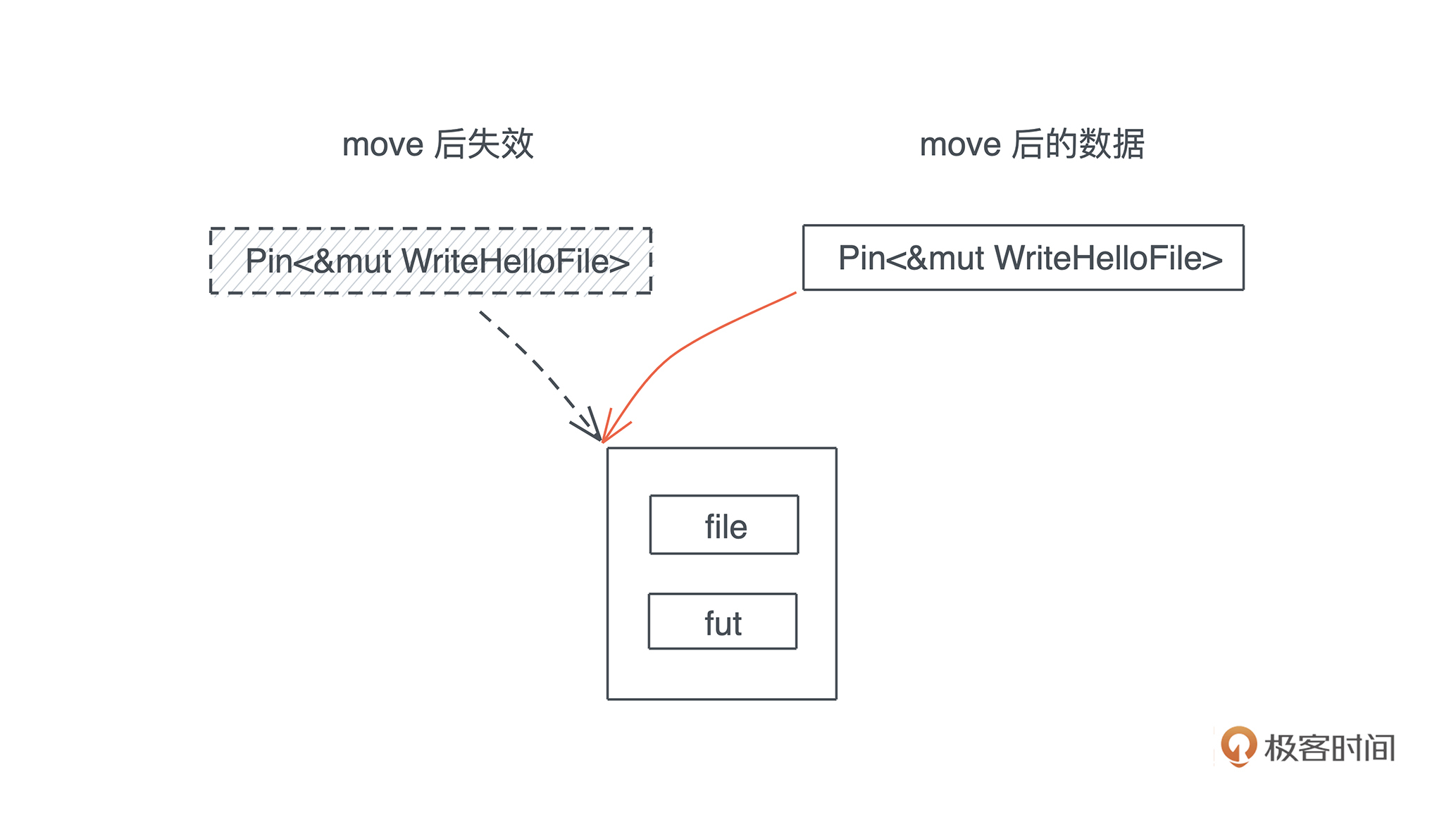 由于数据结构被包裹在 Pin 内部,所以在函数间传递时,变化的只是指向 data 的 Pin: